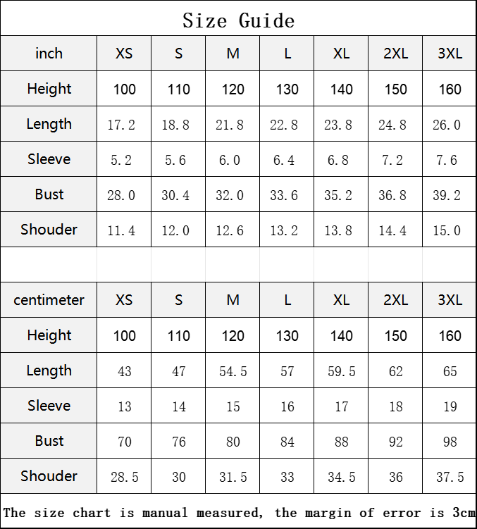 inch | XS | S | M | L | XL | 2XL | 3XL |