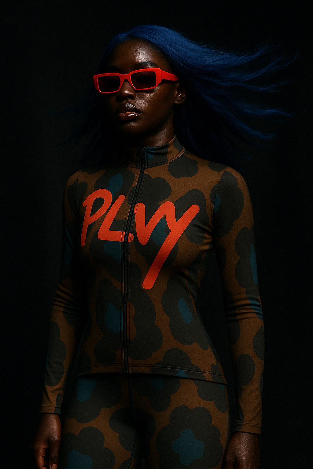 The Bloom Control Jacket is where power meets pattern. Featuring our signature muddy olive + deep cyan floral camo, this zip-up commands the room with a blazing red PLVY stamp front and center. Made to sculpt without suffocating, the fit is athletic, the vibe is all attitude. Whether you’re headed to warm up, wind down, or walk in like you own it—this piece keeps you zipped and centered. Streetwear meets motionwear.