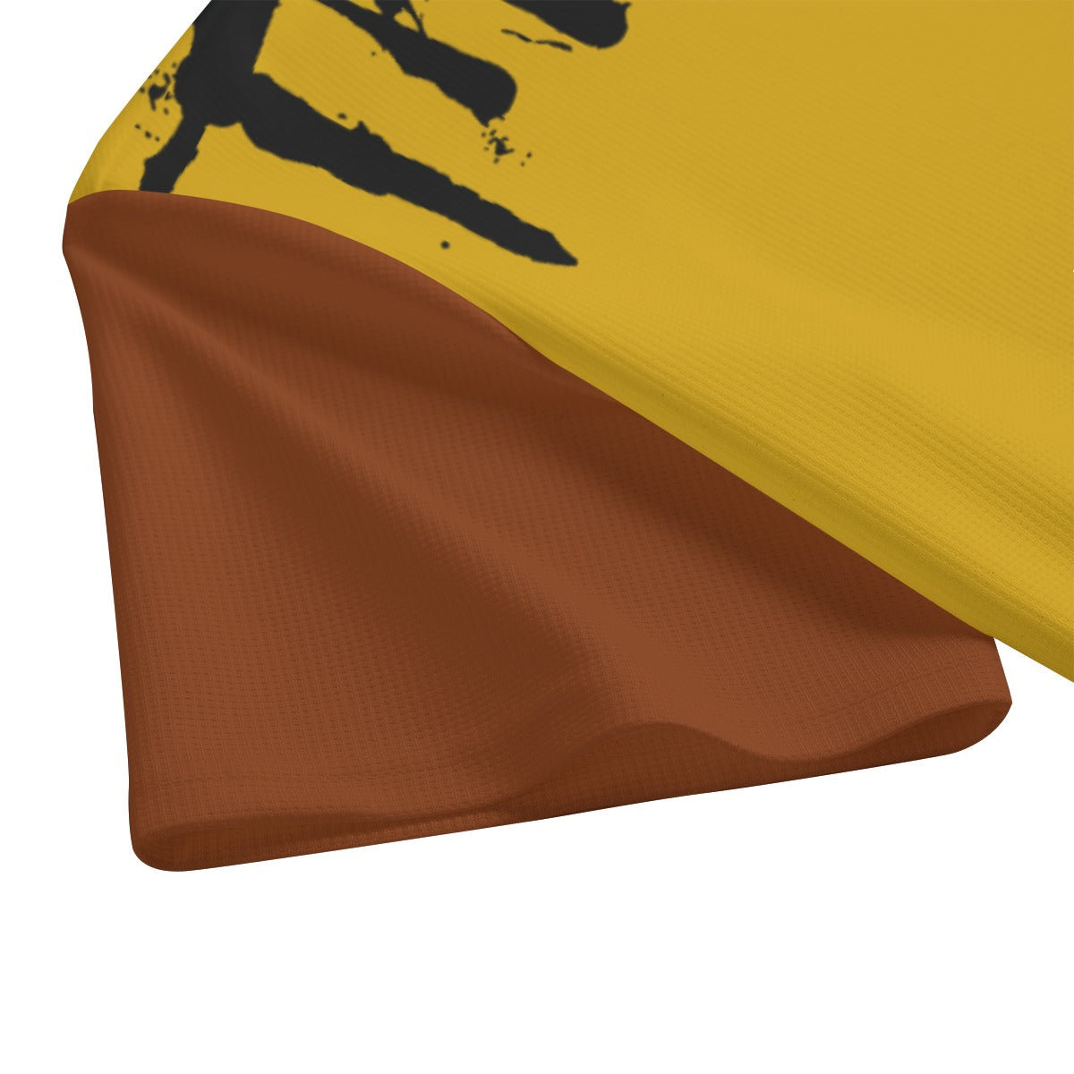 The This Ain’t Fashion Tee – KEUKEN Edition throws the whole industry on notice. Crafted in an oversized structured cut, this tee fuses street-luxury with riot energy. The body is painted mustard gold, with raw contrast brown sleeves and slash-style graffiti font that reads: