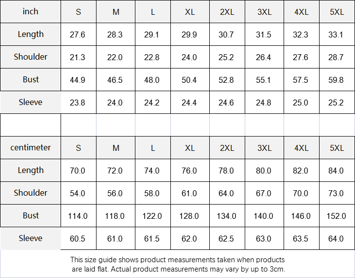 Centimeter | S | M | L | XL | 2XL | 3XL | 4XL | 5XL |