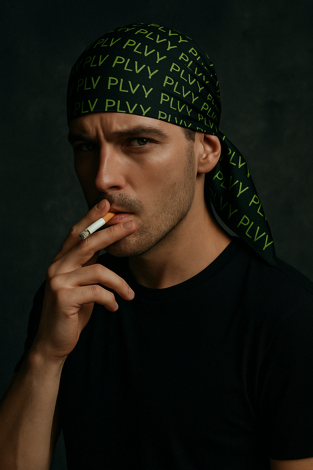 The Flex Script Wrap is a signature silk piece dipped in attitude. Printed with bold green PLVY logos on a black base, it’s giving legacy with no need to explain it. Tie it up like a crown, or let it hang like a banner — either way, it’s a flag for the chosen.