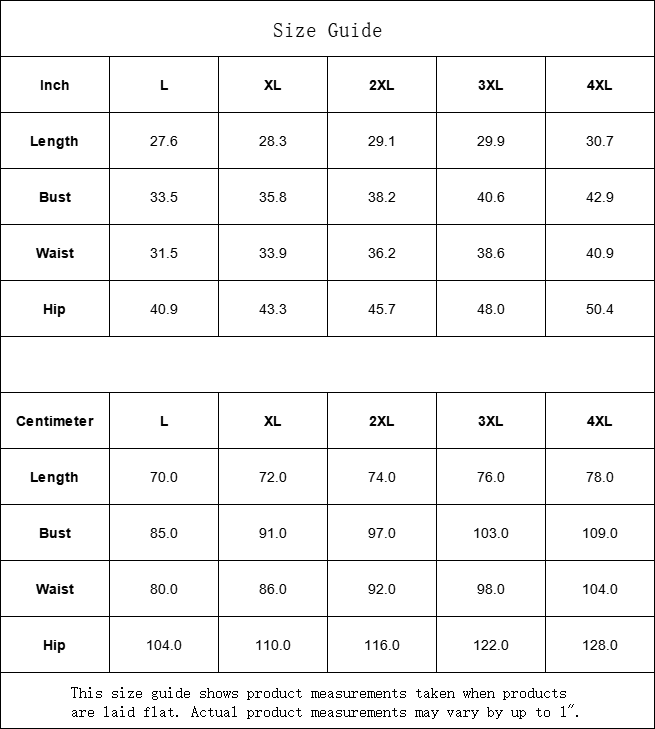This size guide shows product measurements taken when products are laid flat. Actual product measurements may vary by up to 1".