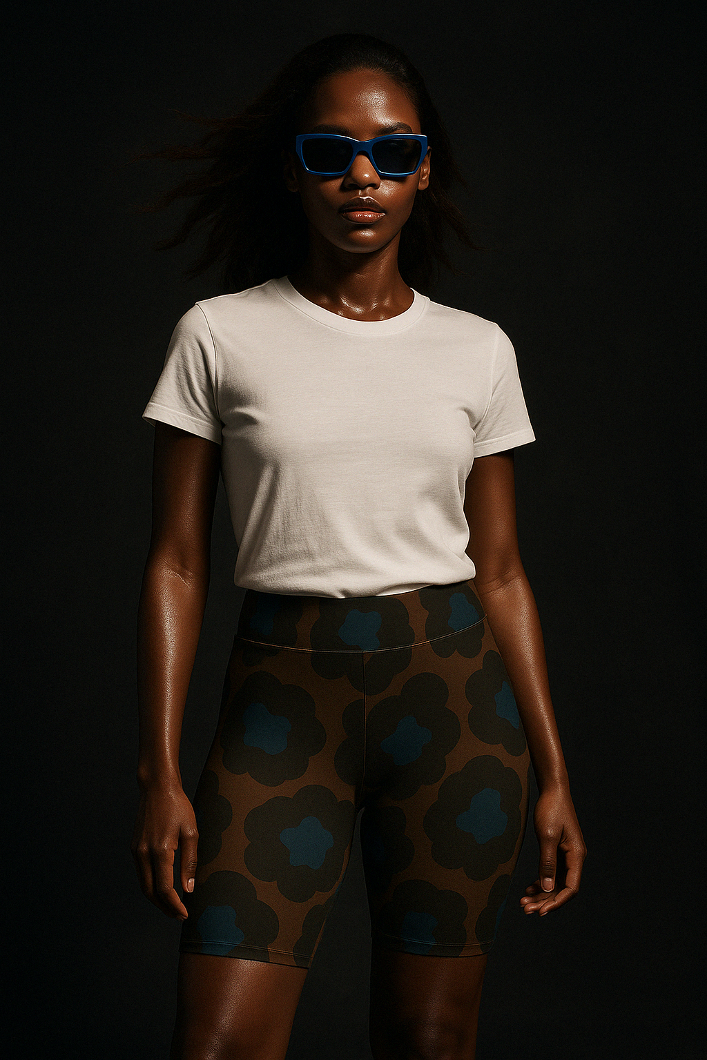 The FLORAL OFFENSE Biker Shorts give the term “flower power” a blackout twist. This rich brown base blooms with oversized, moody teal florals — a palette that feels equal parts retro and radical.