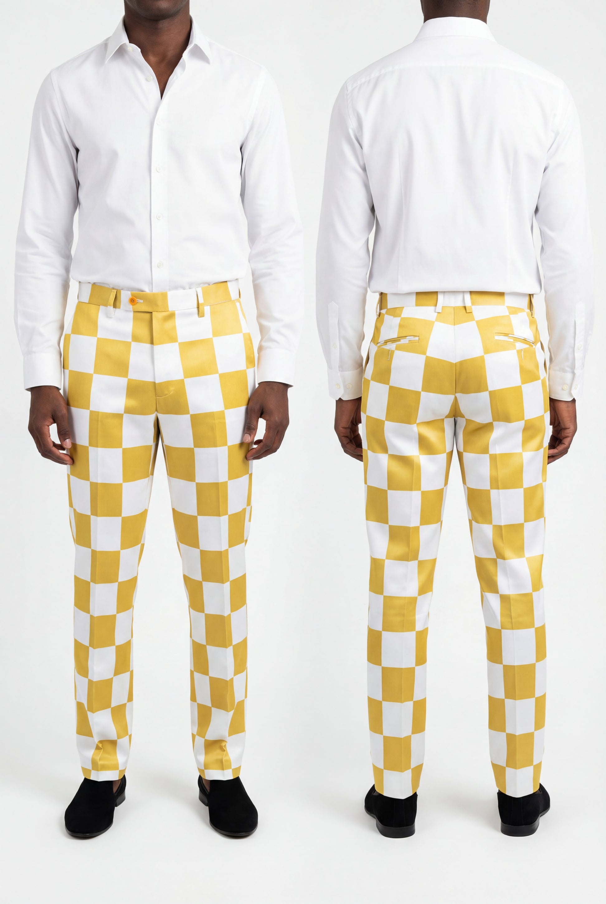 High-contrast gold-and-ivory checker pattern.