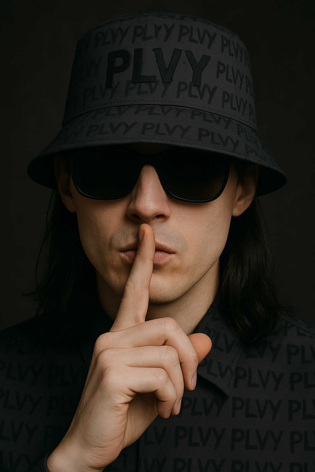 Fully wrapped in a tonal monogram repeat and topped with an oversized matte black PLVY logo, this blackout bucket hat feels both invisible and undeniable. It pairs effortlessly with anything — from full suits to drop-crotch sweats — and sits like a crown on those who don’t need introductions.